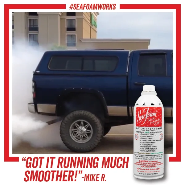 “This is a 2003 Dodge 1500 with a 5.9-liter gas motor (360 Magnum) with about 220,000 kilometers. The truck is old, was parked for a long time and was running real rough. I used Sea Foam Motor Treatment – got it running much smoother! First can of Sea Foam ever…lovin’ it!”